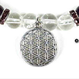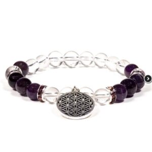 Braccialetto Cristallo di rocca/Ametista + Fiore della vita